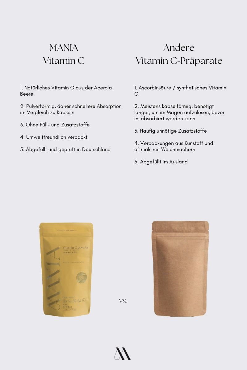Das MANIA IMMUNFIT Komplettset wurde speziell zusammengestellt, um dich fit und gesund durch die kalte Jahreszeit zu begleiten. Die kraftvolle Kombination aus Vitamin C, Vitamin D3K2 und Magnesium bildet ein unschlagbares Trio, das dein Immunsystem optimal unterstützt und dir hilft, krankmachenden Viren die Stirn zu bieten.
