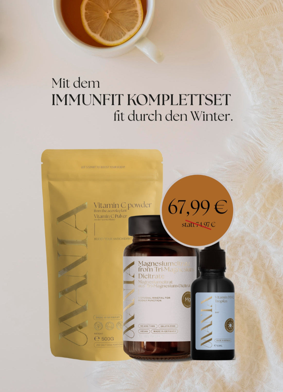 Worauf wartest du noch? Genieße die kuschlige Winterzeit mit einem starken Immunsystem – dank dem MANIA IMMUNFIT KOMPLETTSET!